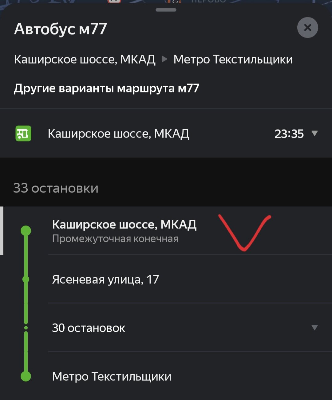 Была условная конечная у маршрута 668 (5-й микрорайон Северного Бутово - 17-й автобусный парк). Но там у него было полукольцо по Дорожной, Подольских Курсантов и Варшавке. Автоинформатор в сторону Бутово обновлялся как раз от этой остановки.