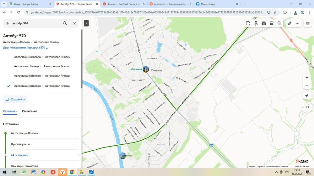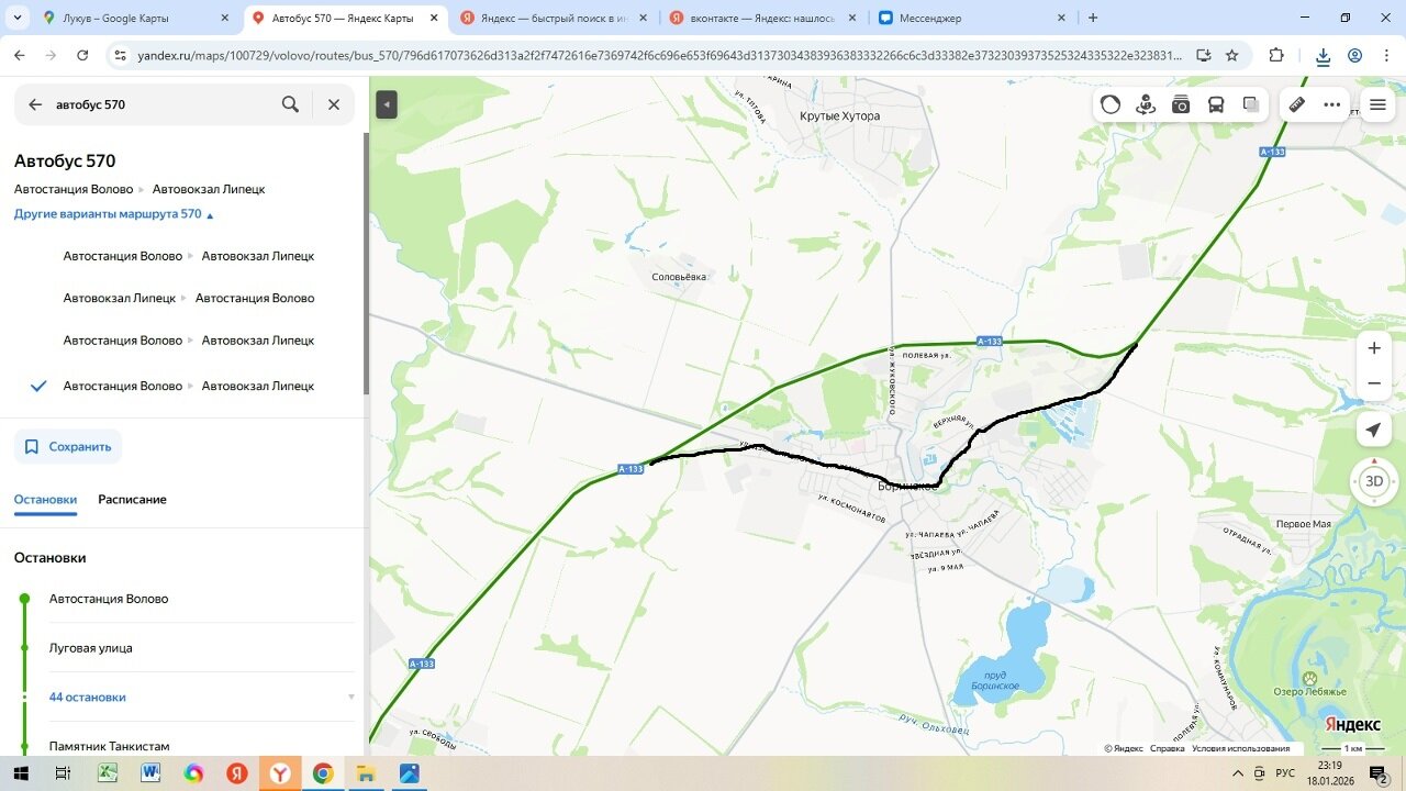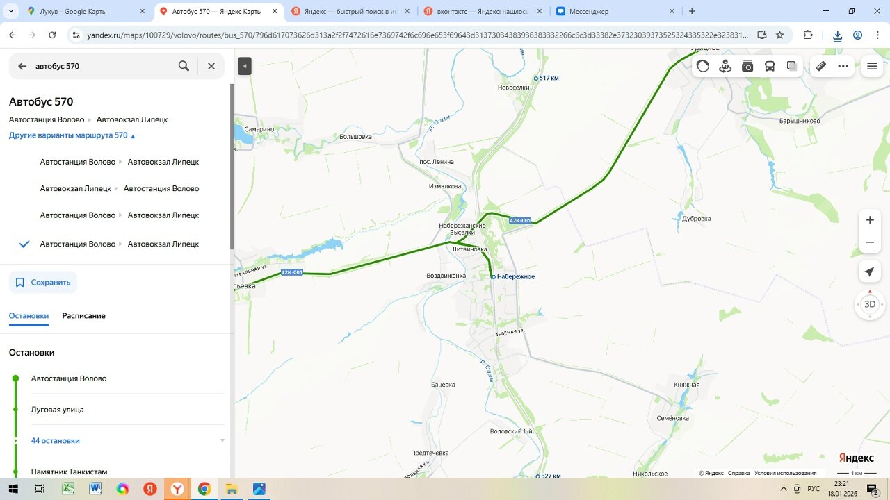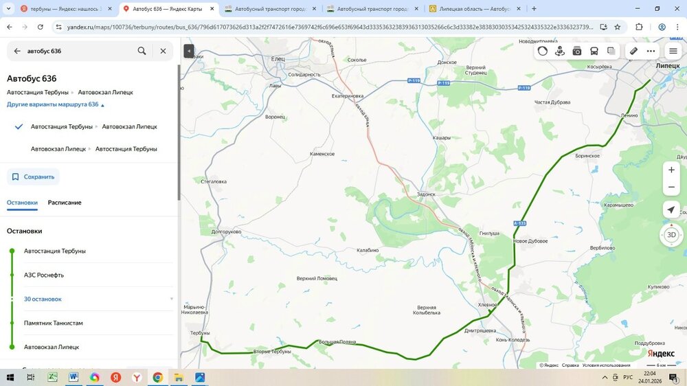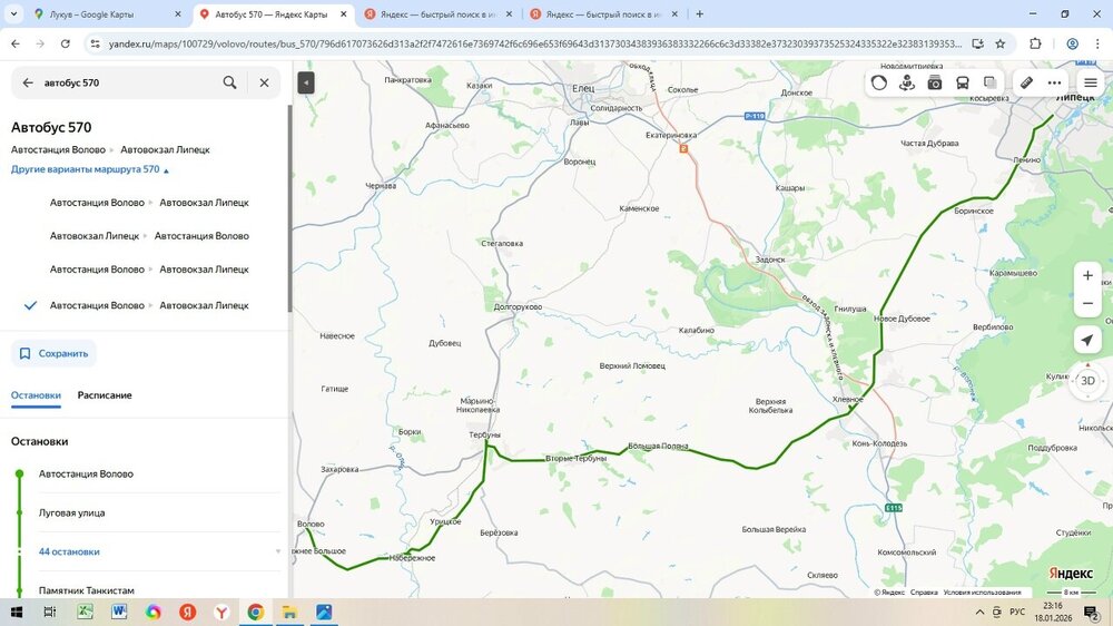 Переходим к маршруту "Липецк - Волово".