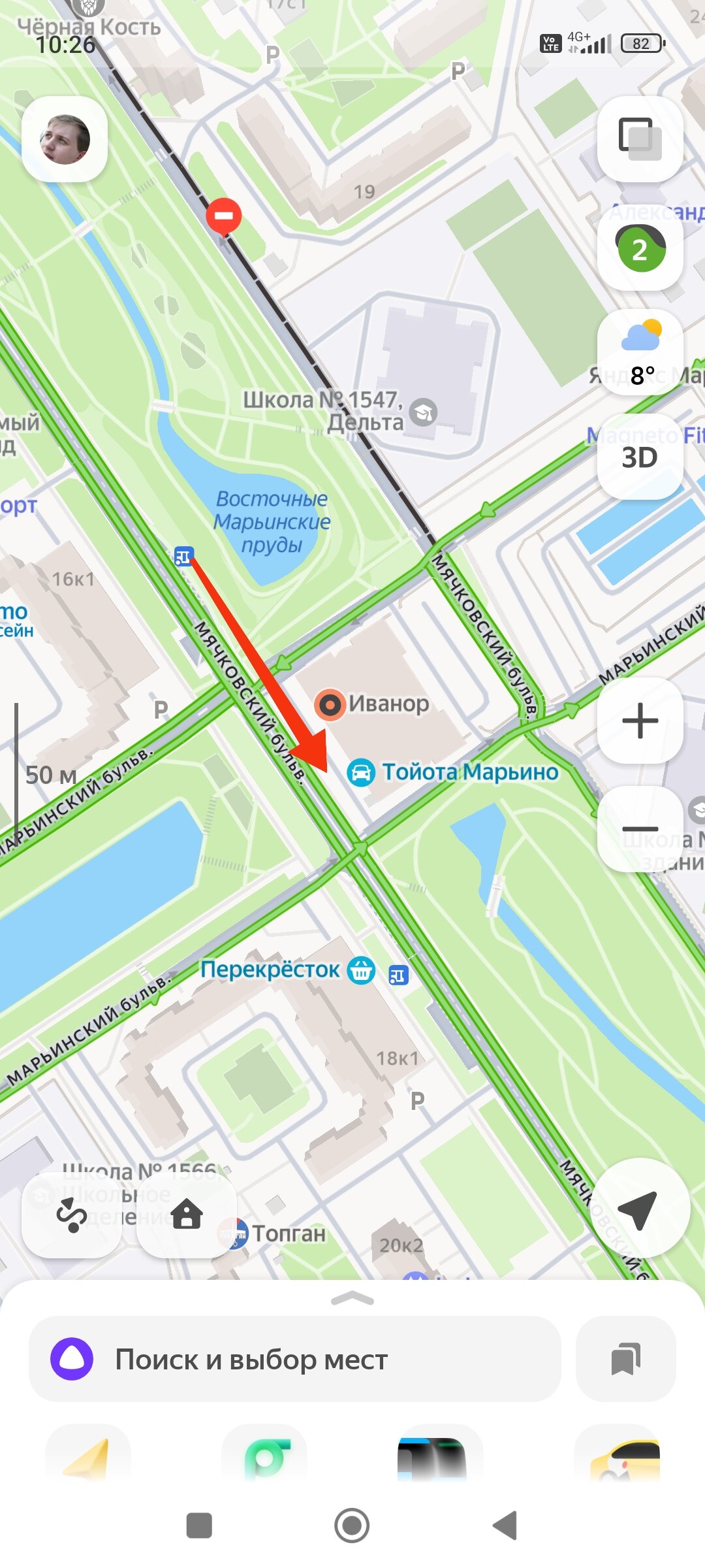 3. На Мячковском бульваре по факту перенесена остановка Марьинский бульвар на новое место