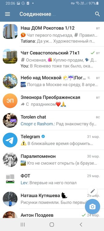 ПО моему НАзревает рекорд. Тьфу-тьфу, но ПО моему вот на 20.00 мне в тг никто за сегодня не НАписал ни слова и ни в одном чате тоже... Сравню скрин тг и мах у себя