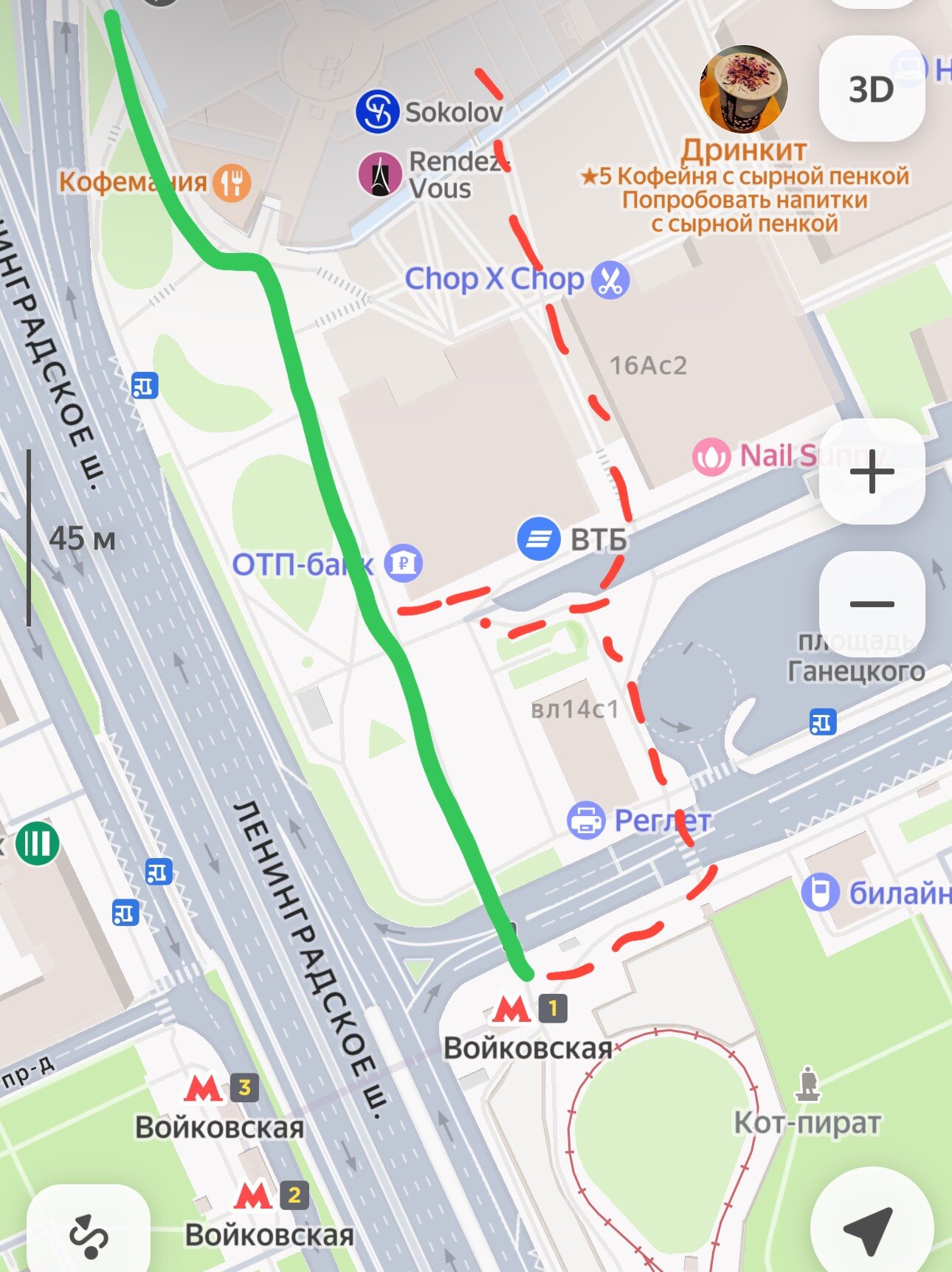 С переносом конечной на Войковской на пл. Ганецкого и открытием на его месте сквера и прямой дороги до Метрополиса, пересадка между Войковской и Балтийской сократилась с 14 минут через ТЦ до 8 минут через улицу.