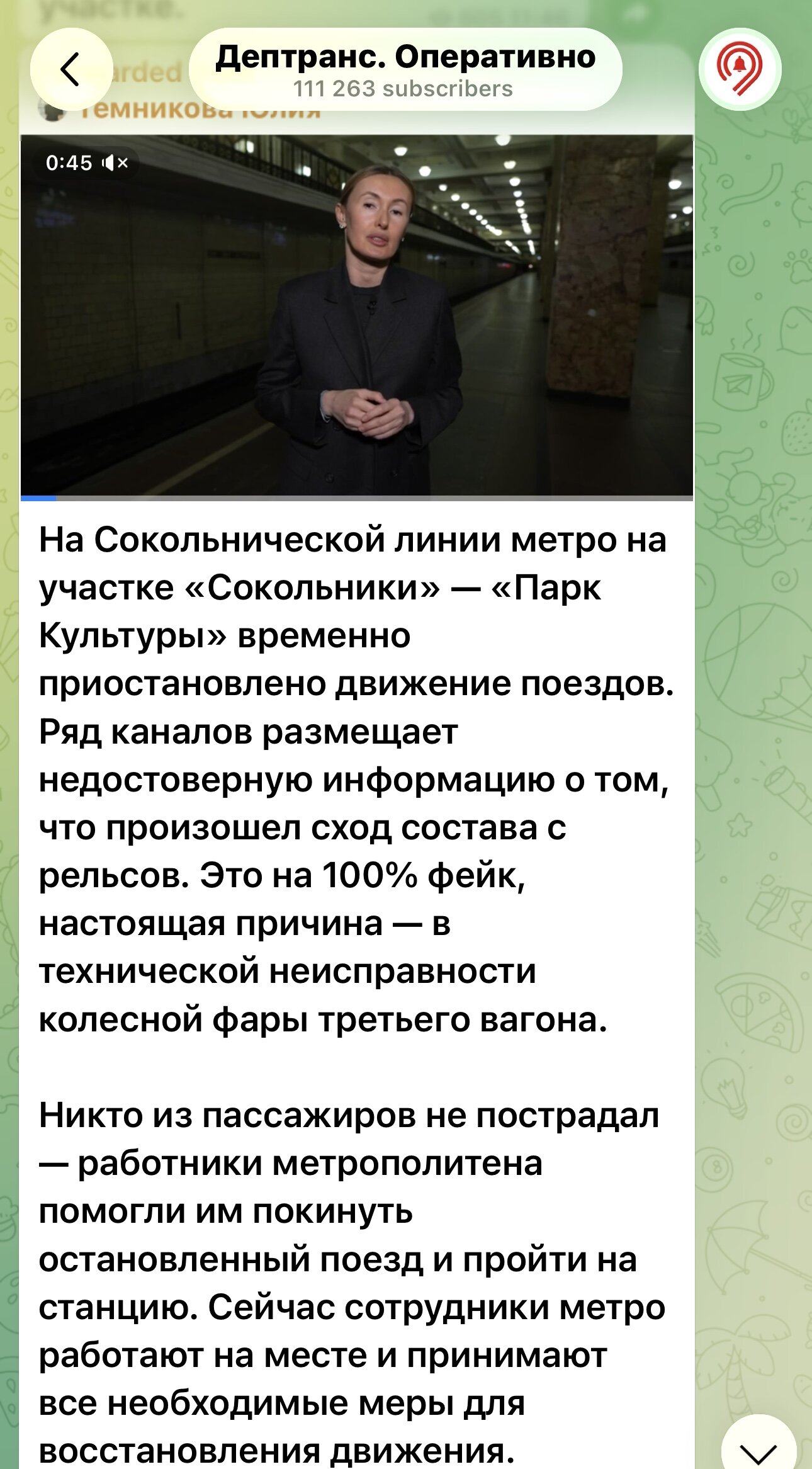 Кружок из ТГ сюда не прикрепить. Юлия Темникова говорит, что в ближайшие минуты откроется движение на полном участке