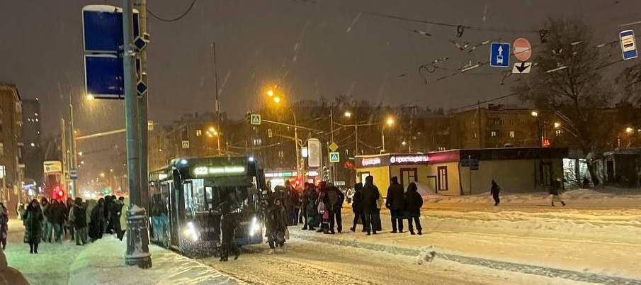 Некуда сгребать из-за бетонных ограждений. Посадка в автобус у м.Первомайская. 11.01.26. "Для безопасности пассажиров", - говорили они