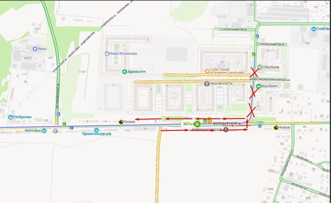 Автобусы маршрут 367Н будут следовать от второй остановки маршрута "Ново-Молоково" ❗️❗️❗️❗️ Заезды на ул. Василия Молокова (начальный и конечный пункт "Солнечный проезд") отменены, в связи с невозможностью на данном отрезке разъехаться со встречным транспортом❗️ Автобусы будут следовать от остановочного пункта "Ново-Молоково" (2ая остановка по маршруту в сторону метро) После расчистки дорог, автобус будет следовать по установленной схеме маршрута. 🚨 Заезд в с. Ульянино не выполняется из-за зауженной дороги Дорога в с. Ульянино (46Н-09259) заужена, отсутствует возможность разъезда со встречным транспортом. Автобусы маршрутов №№ 24, 324 временно не осуществляют посадку/высадку на остановках: · Ульянино-1 · Ульянино-2 · Кладбище 📍 Координаты: 55.351025, 38.426075 🚨 Изменена схема движения маршрута №314 в Мытищах Движение по ЖК от остановки «ЖК Императорские Мытищи» невозможно из-за запаркованности транспортом и отсутствием возможности разворота. Схема движения изменена: посадка и высадка пассажиров осуществляется от остановки «Тенистый бульвар». Отменены остановки: · ЖК Императорские Мытищи · СПК Грачи После нормализации ситуации с запаркованостью, автобус будет следовать по установленной схеме маршрута. 📍 Координаты: 55.955021, 37.682642 🚨 Заезд на участке от А-107 до остановки «Тайга» отменён На участке дороги 46Н-01573 от А-107 до остановочного пункта «Тайга» дорога заужена, разъезд со встречным транспортом невозможен. Автобус маршрута № 63 не выполняет заезд на данный участок. 📍 Координаты: 55.386276, 37.989302 🚨 Заезд в микрорайон Авиаторов невозможен из-за припаркованных автомобилей На улице Кожедуба в микрорайоне Авиаторов обочины заняты припаркованными легковыми автомобилями, что делает невозможным проезд автобуса. Автобус маршрута № 889 не заезжает в микрорайон до нормализации уличного движения. 📍 Координаты: 55.826612, 37.946368