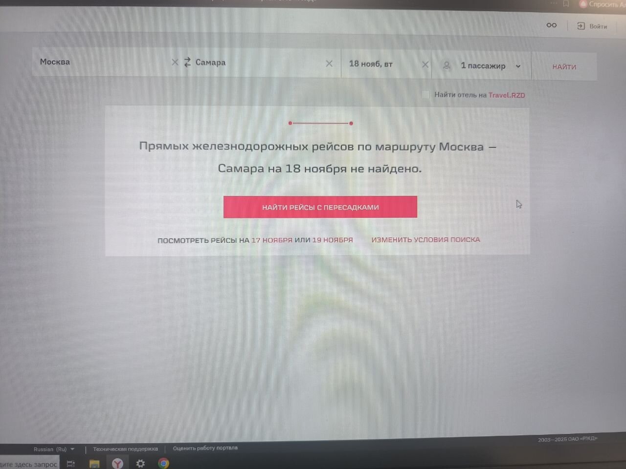 Через Яндекс браузер сайт РЖД не находит прямых поездов по примитивным маршрутам. Выдаёт какой-то ядрёный абсурд, предлагая до Самары ехать так: Сесть на Воронежский 238 до Рязани 2, там перейти на Рязань 1, сесть в Тольяттинский 066, а от жиг моря сесть в автобус до Курумоча))) С чем такое связано?