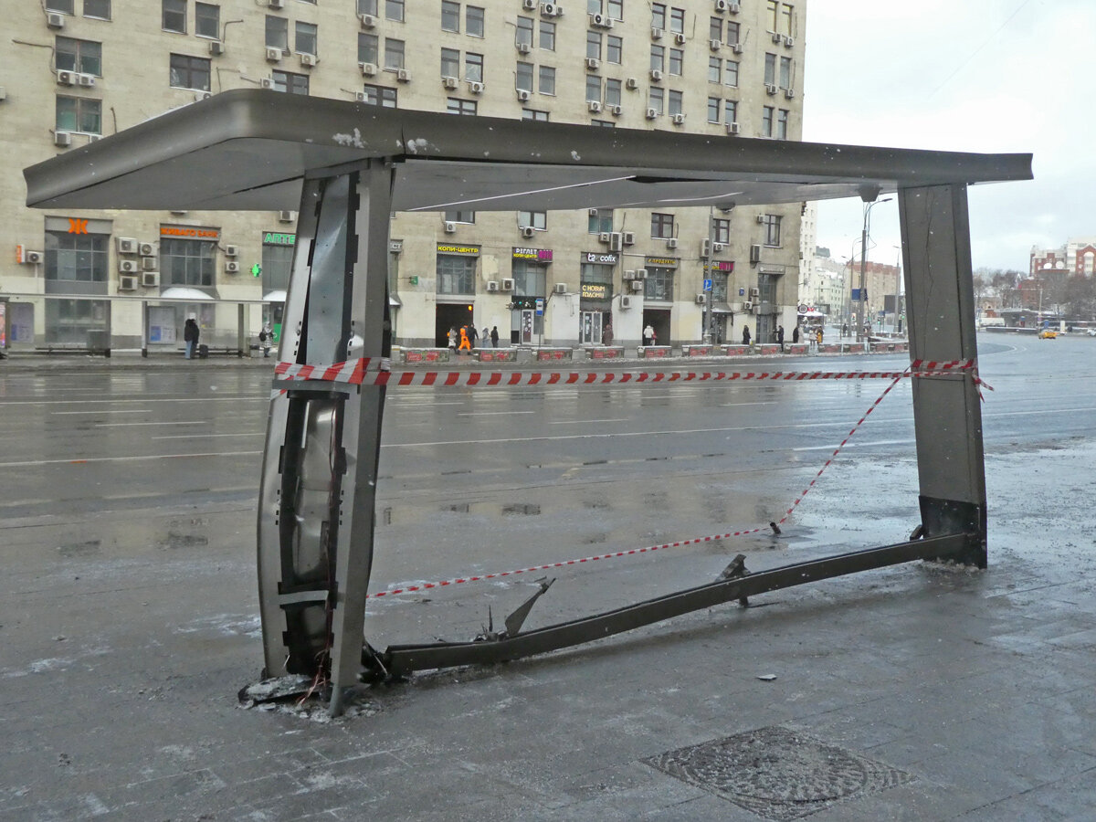 У Октябрьской будку свернули. Такое впечатление, что кто-то из центра ехал и со всей дури пролетел прямо, врезавшись в стойку будки. Когда случилось - не знаю, судя по "зеркалам" Яндекса, 21 декабря будка была целой.