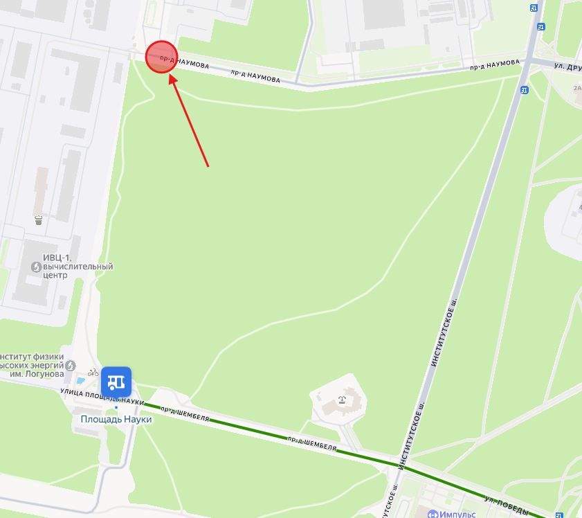 сделали до проходной ИФВЭ, которая на проезде Шембеля, а хотят добавить ещё заезд на пр-д Наумова. Хотя у меня вообще была мысль продлевать его летом до дач, которые у карьера, но там надо ОРП делать, а заморачиваться ради нескольких человек вряд ли будут.