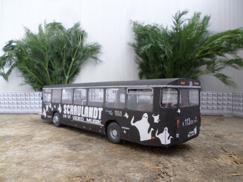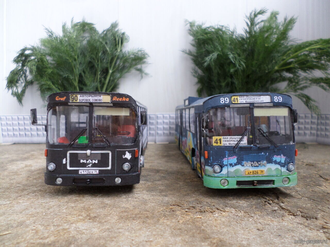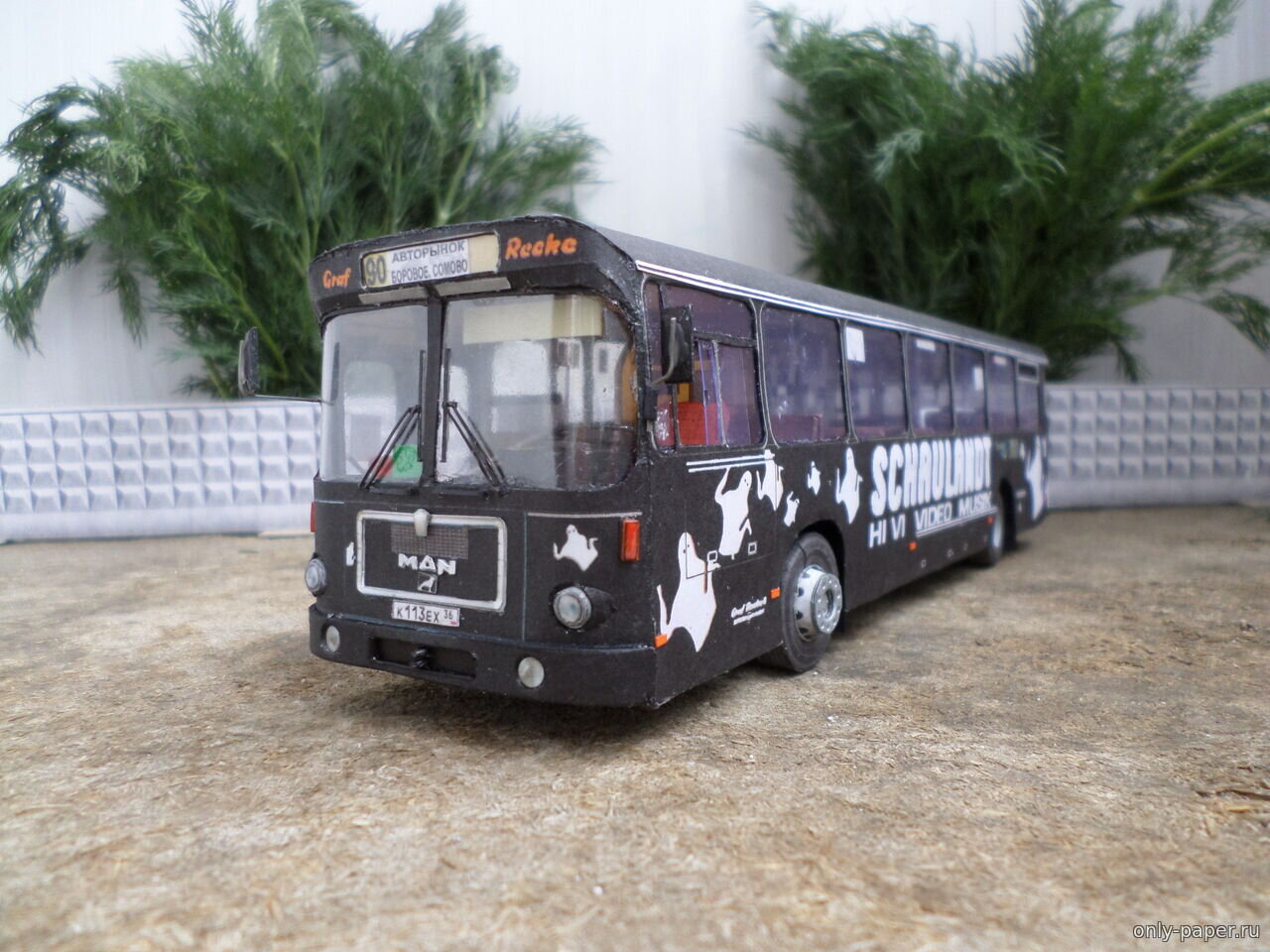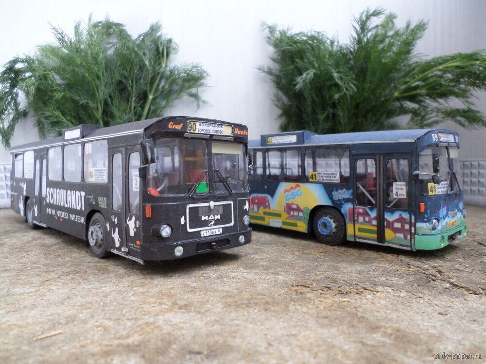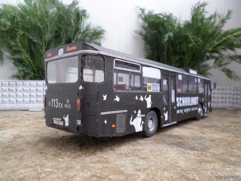 MAN 192 SL200 "Каспер" . Масштаб 1:43. Материал - бумага плотностью 200гр/м2. В Воронеже такой катался в 2002 году, потом, при переходе на жёлтые номера наклейки с привидениями отодрали (во время прохождения техосмотра в ГАИ) . Так этот автобус выглядел в Воронеже в 2005 году (уже без приведений) : https://fotobus.msk.ru/photo/1292943/ А вот он ещё с приведениями, но ещё в Германии (2001год) : https://fotobus.msk.ru/photo/1592786/ Процесс сборки в мастерской : https://only-paper.ru/forum/33-32510-708859-16-1771169667 Обзорное видео: https://vk.com/video890555898_456239062 Лето 2002-го года... Автобус стоит в ПАТП : Вид снизу незатейлив: А вот таким получилось место водителя в модели: Пассажирский салон: Два MAN 192 SL200 стоят в ПАТП : Лето 2002 года... MAN 192 SL200 на маршруте:2 балла