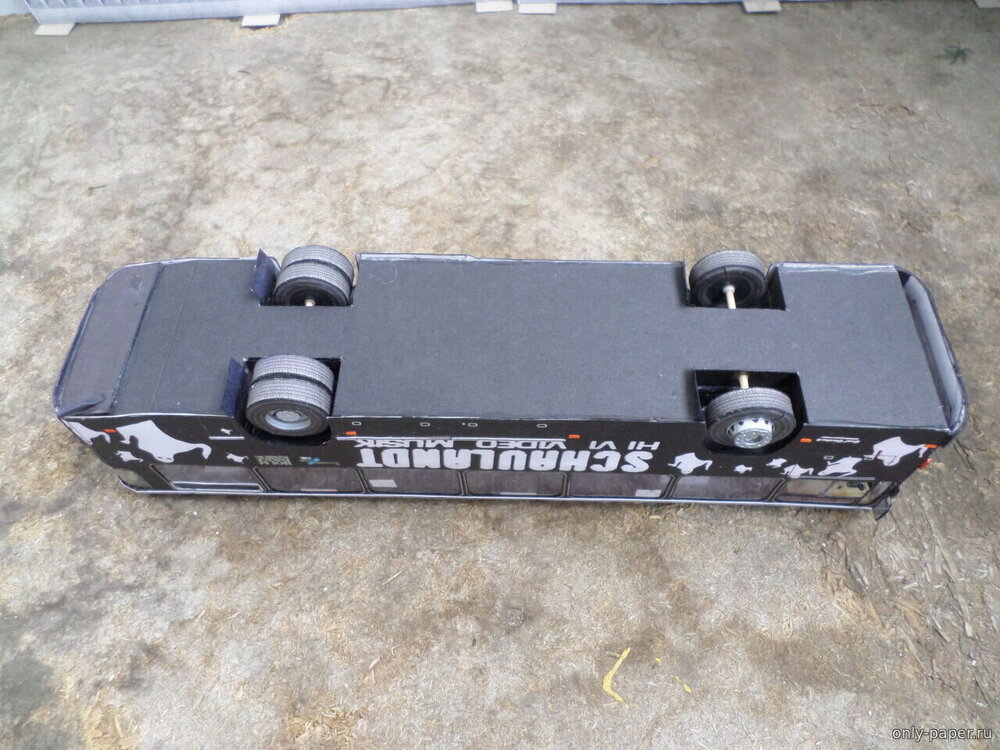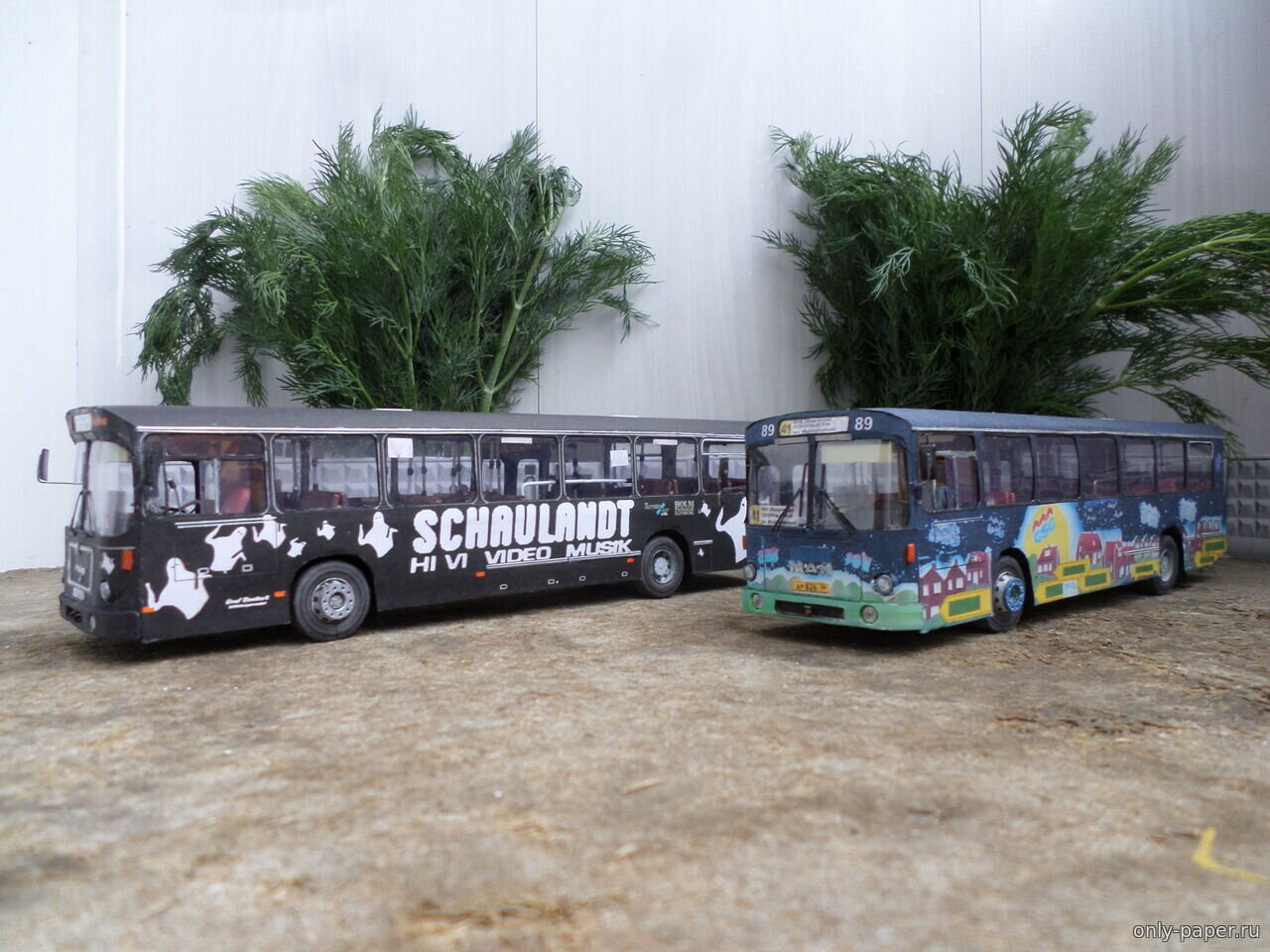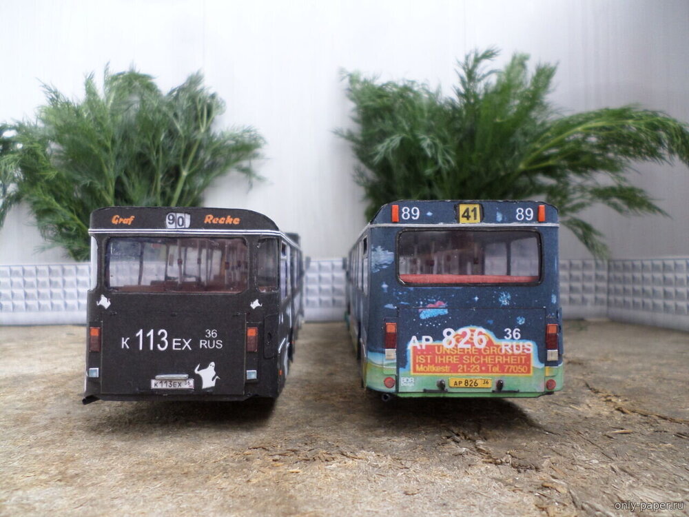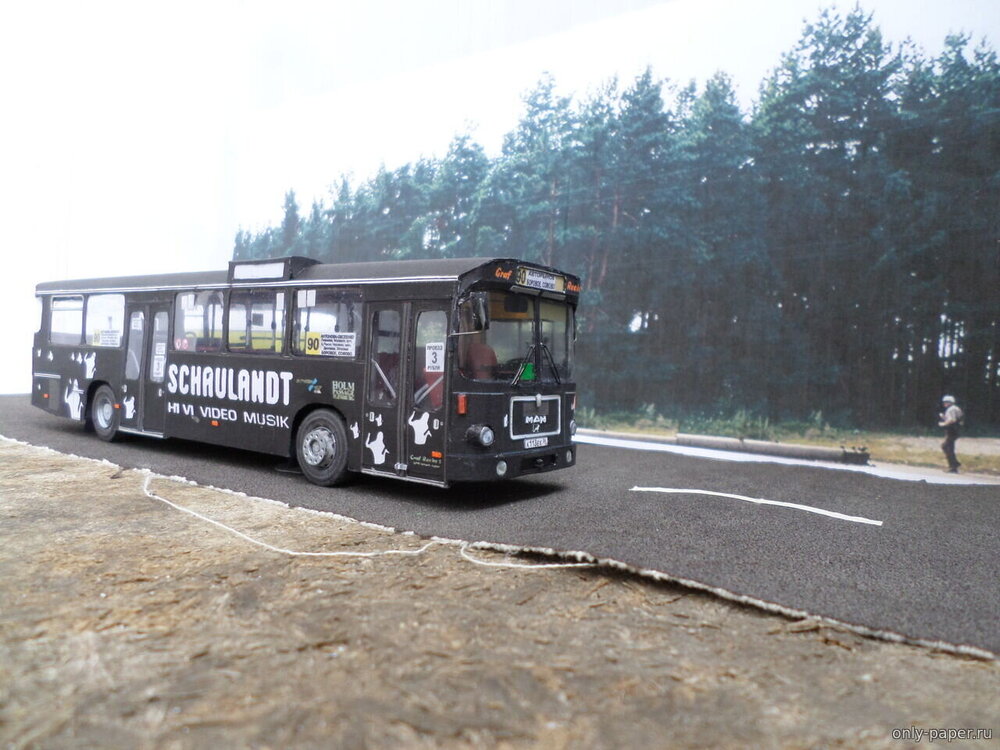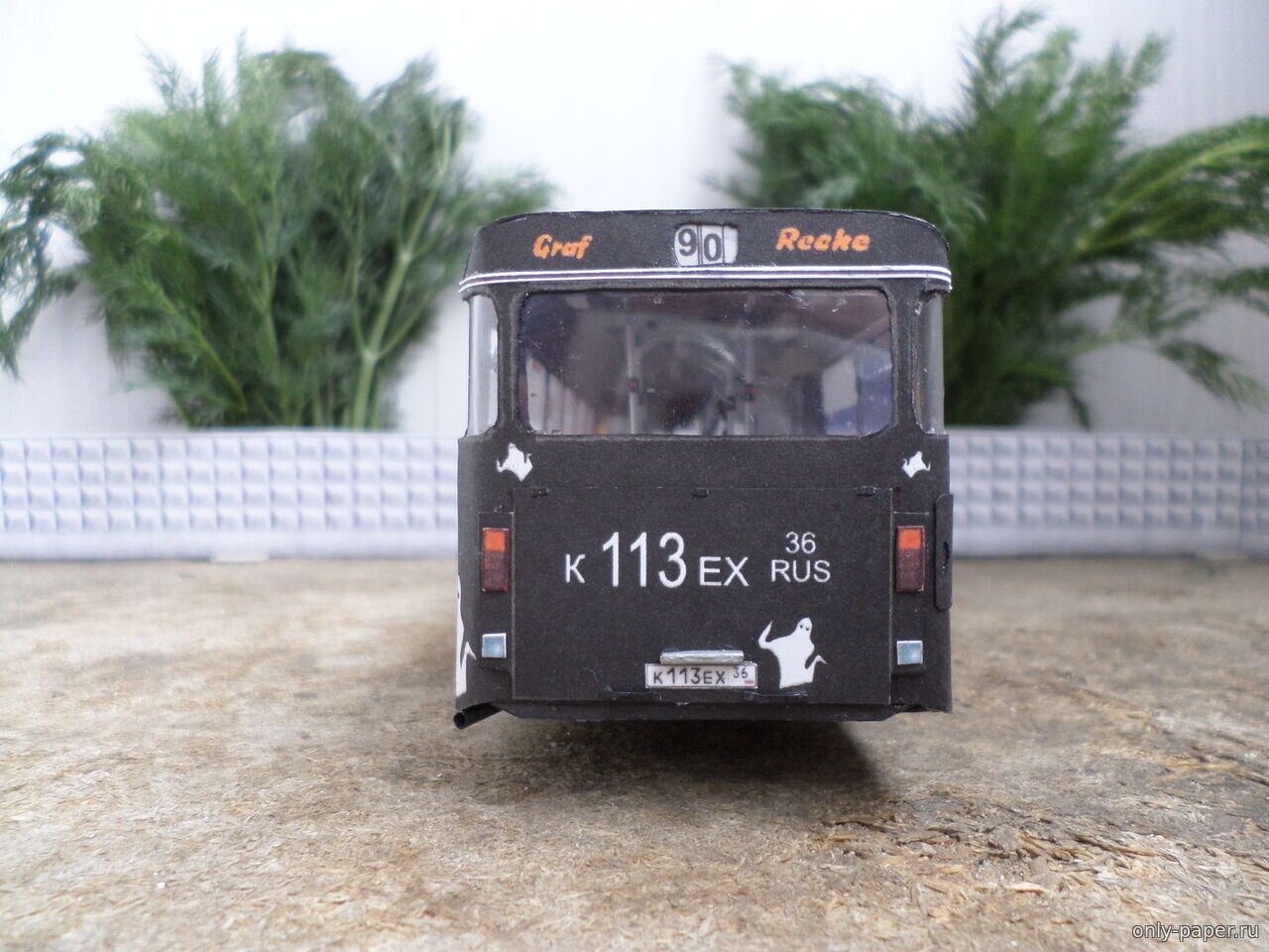 MAN 192 SL200 "Каспер" . Масштаб 1:43. Материал - бумага плотностью 200гр/м2. В Воронеже такой катался в 2002 году, потом, при переходе на жёлтые номера наклейки с привидениями отодрали (во время прохождения техосмотра в ГАИ) . Так этот автобус выглядел в Воронеже в 2005 году (уже без приведений) : https://fotobus.msk.ru/photo/1292943/ А вот он ещё с приведениями, но ещё в Германии (2001год) : https://fotobus.msk.ru/photo/1592786/ Процесс сборки в мастерской : https://only-paper.ru/forum/33-32510-708859-16-1771169667 Обзорное видео: https://vk.com/video890555898_456239062 Лето 2002-го года... Автобус стоит в ПАТП : Вид снизу незатейлив: А вот таким получилось место водителя в модели: Пассажирский салон: Два MAN 192 SL200 стоят в ПАТП : Лето 2002 года... MAN 192 SL200 на маршруте:2 балла