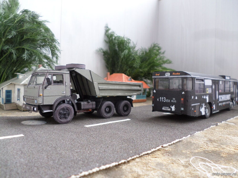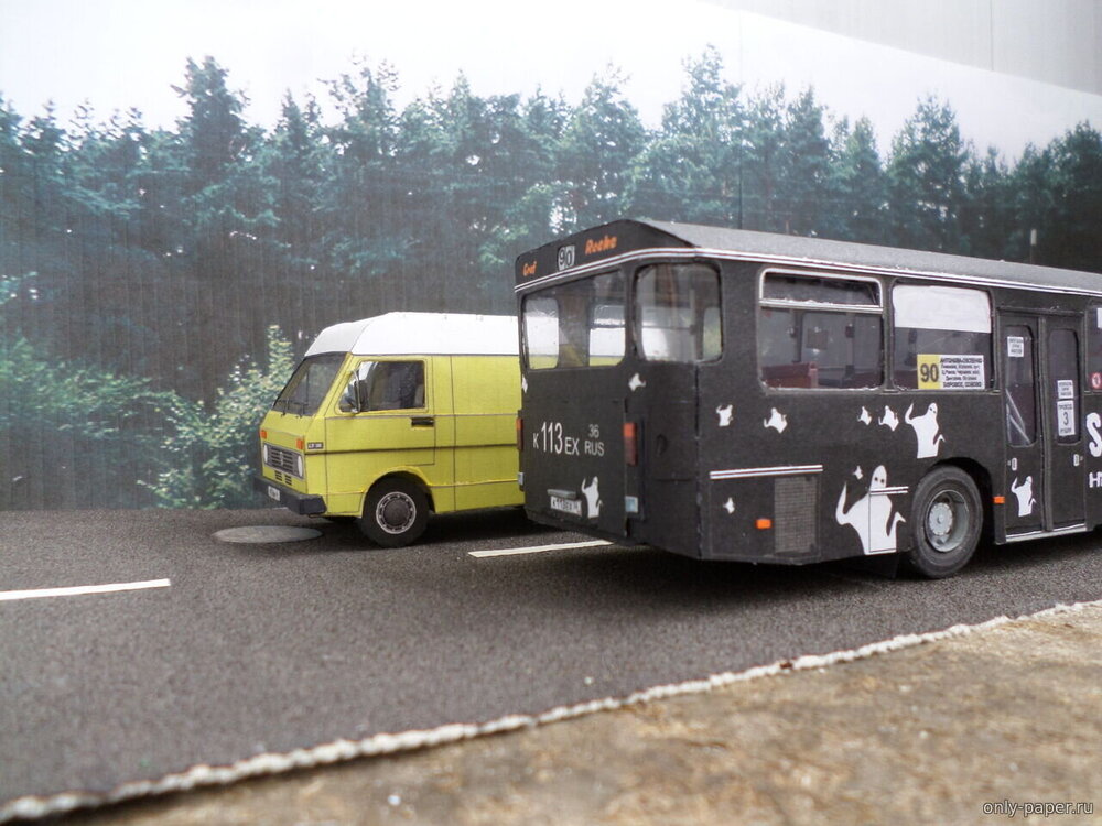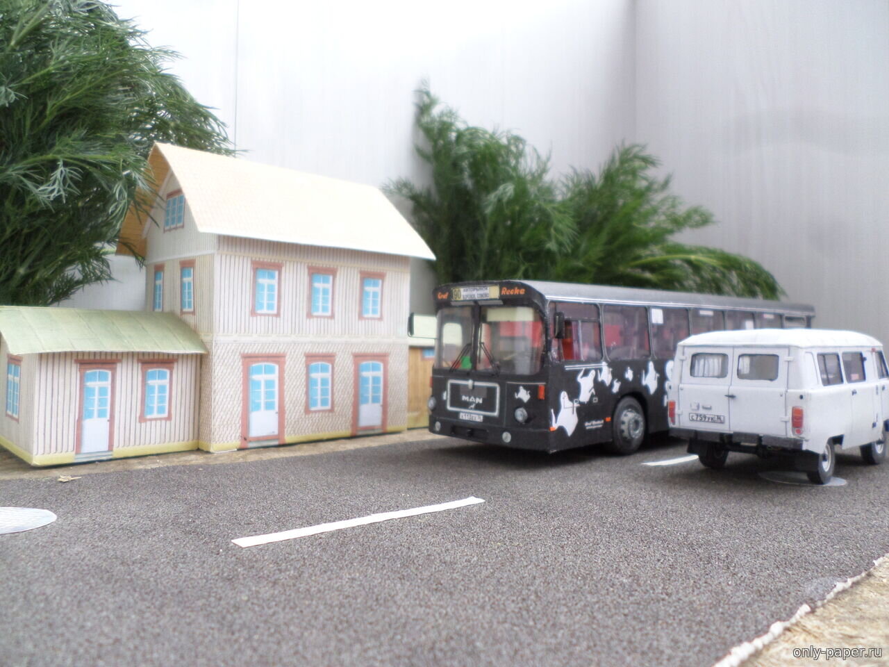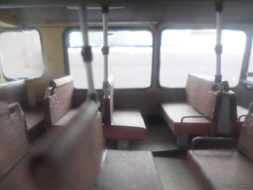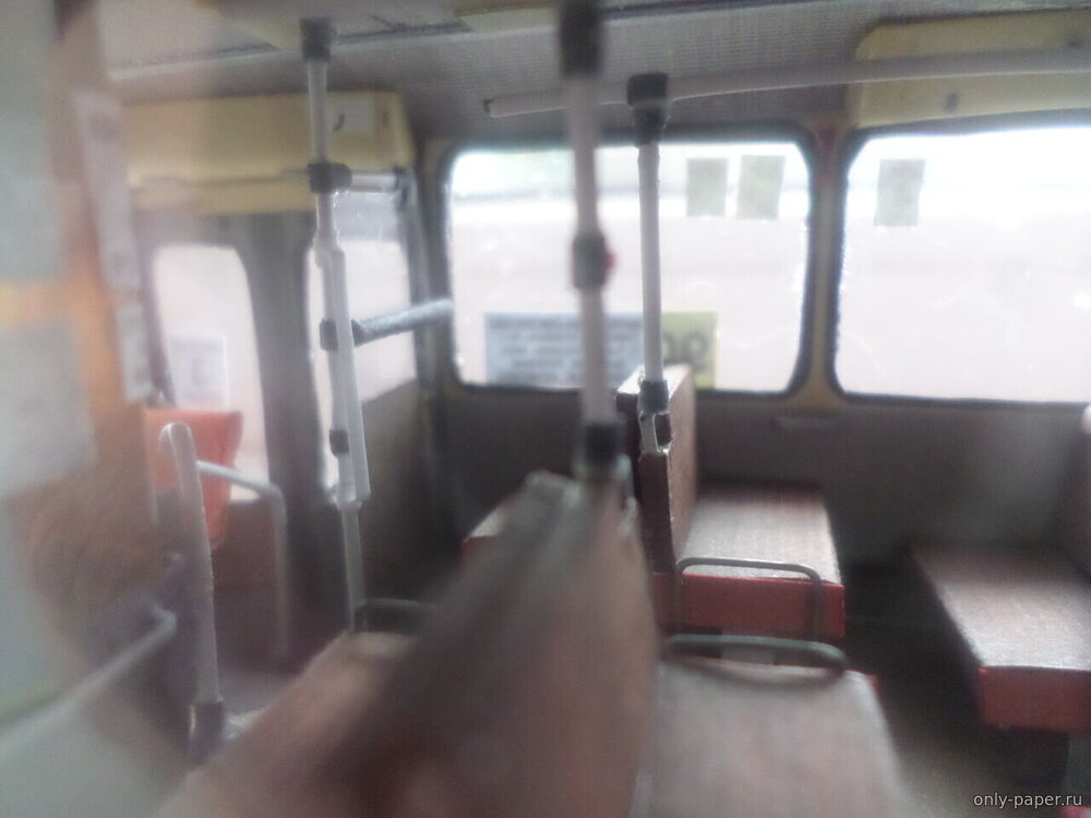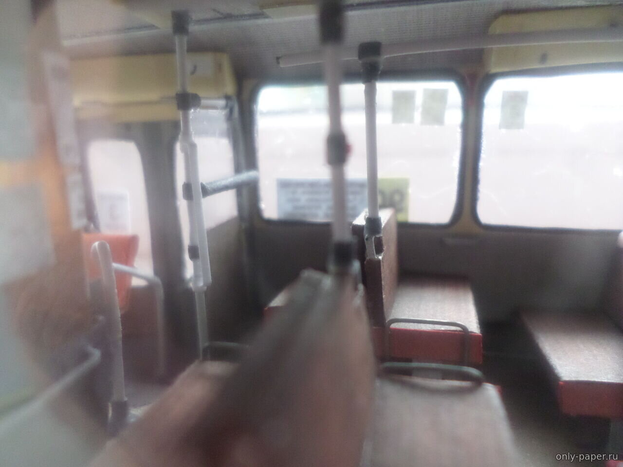 MAN 192 SL200 "Каспер" . Масштаб 1:43. Материал - бумага плотностью 200гр/м2. В Воронеже такой катался в 2002 году, потом, при переходе на жёлтые номера наклейки с привидениями отодрали (во время прохождения техосмотра в ГАИ) . Так этот автобус выглядел в Воронеже в 2005 году (уже без приведений) : https://fotobus.msk.ru/photo/1292943/ А вот он ещё с приведениями, но ещё в Германии (2001год) : https://fotobus.msk.ru/photo/1592786/ Процесс сборки в мастерской : https://only-paper.ru/forum/33-32510-708859-16-1771169667 Обзорное видео: https://vk.com/video890555898_456239062 Лето 2002-го года... Автобус стоит в ПАТП : Вид снизу незатейлив: А вот таким получилось место водителя в модели: Пассажирский салон: Два MAN 192 SL200 стоят в ПАТП : Лето 2002 года... MAN 192 SL200 на маршруте:2 балла