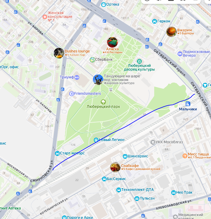 Там выделенку для автобусов сделали по центру полосы, чтобы отсечь сворачивающих на переезд. Впрочем контролируется ли он камерами... Со стороны ст.Люберцы по Смирновской тоже сделали такую выделенку. Когда съезды на эстакады достроят, должно стать намного лучше (уже даже стало лучше, по сравнению с тем что было года 3 назад). А вообще переезд надо закрывать, вместо это построить одностороннюю дорогу вот здесь (обозначил синим) от Смирновской до Октябрьского в обл. В обратную сторону не надо, так как все равно на 90% переезд используется именно в этом направлении.