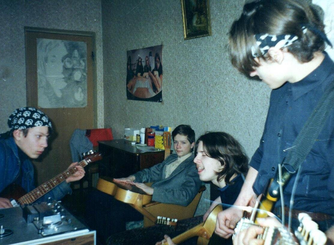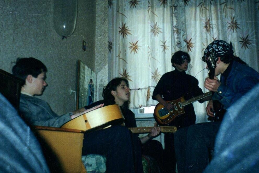 Раз уж тема называется "Творчество наше", то тогда немного от себя вкину. Ровно 33 года назад, 4 марта 1993 года я уговорил родителей и они купили мне в Военторге на Щукинской мою первую гитару Шиховского завода. В тот же день брат нарисовал мне на листочке, как зажимать аккорды, а уже через 17 дней я написал свою первую песню. И есть фото этой гитары. Октябрь 1993 года, репетиция у меня дома моей первой группы НЗ, на фото три шиховских табурета и два Урала, один из которых (басовый) играет через катушечный магнитофон с усилителем!!!